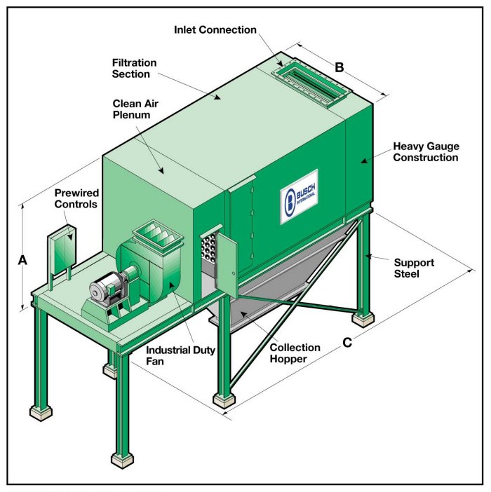 Our Busch brand Fugitive Emissions Filtration units (FEF) provide secondary emissions control of metallurgical fumes. They are custom designed to fit your specified space dimensions, wiring and connection requirements, and construction material, thereby ensuring optimal performance, efficiency, and operational costs.