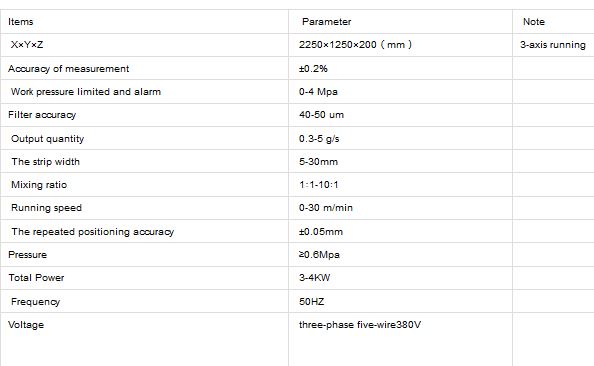 Two-components Foam sealing gasket machine detailed technical parameters: