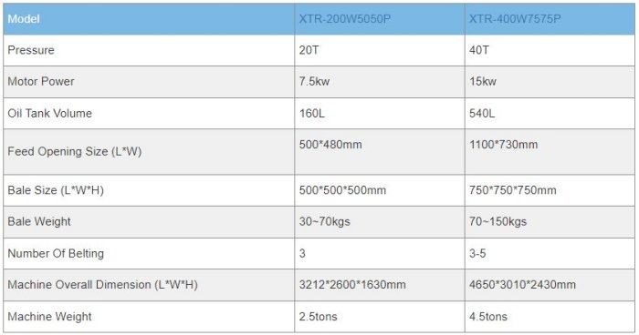 Specialized in recycling and compressing the waste paper, plastic film, fabric etc. convenient for storage, saving labor cost.