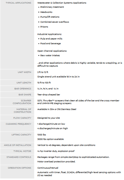 - Tear-drop shaped bars are the most efficient on the market and allow for more favorable flow characteristics and less headloss