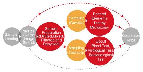 - Physical Test: Physical character of feces sample will be recorded with images captured through automatic barcode reading;