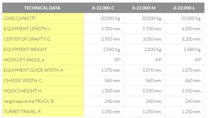 Jimeca - Model JI-22000 C / JI-22000 M / JI-22000 L -Fully Hydraulic Multi-Hooklift
