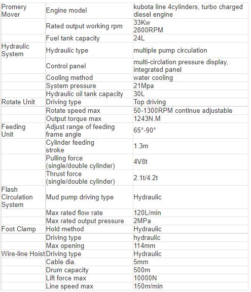 The drilling rig is a multi-purpose portable all- hydraulic engineering geological exploration rig, which is a rope coring rig with turbine diesel engine as power and adopts full-hydraulic power head drilling mode.