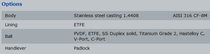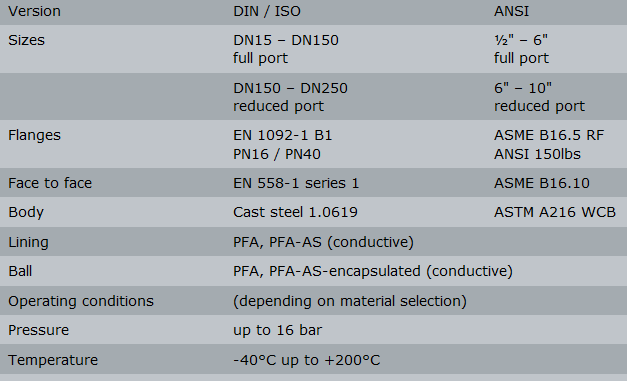 Fully lined Ball Valves for shut-off and control of corrosive, permeating liquids or gaseous media.