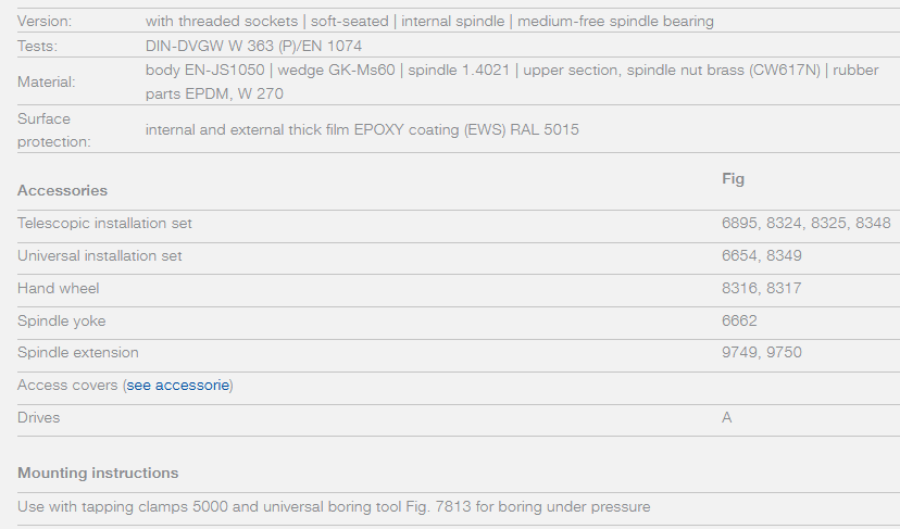Part no. 180000. Fully protected slide gate valve. Fig. 5005 | PN 16. Drinking water, service water.