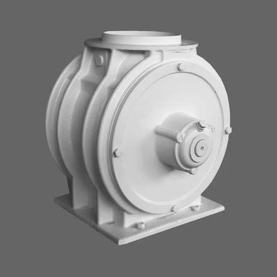 The material falls through the inlet throat onto the rotating sealing roller and fills its pockets. The rotation of the roller transfers it to the lower outlet throat, where it proceeds to the subsequent technology. In doing so, it acts as a seal between the pressurized and unpressurized space.