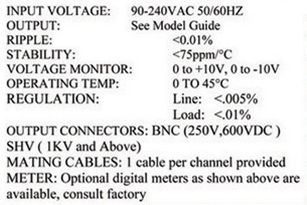 The GAMMA BP scries of Bi-Polar Power Supplies is available in up to Eight Channels of output. Channel Outputs of the same or different ratings can be combined in one enclosure. Each Channel is equipped with a voltage monitor and output connector and is independently controlled and regulated. Single Digital Meter with selector switch provided.