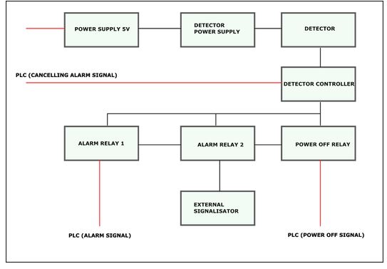 Scintillation signalisator is the core element of the system. The type of scintillator is choosen according to the application: