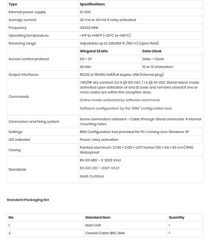 GAO-RFID - Model 214054 -433 MHz Active RFID Reader Access Control Autonomous or Centralized Sensor