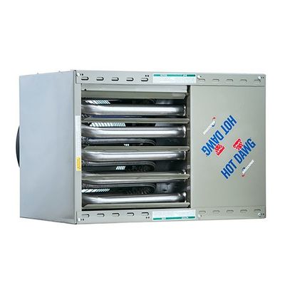The ideal heating solution for residential garages and workshops, along with light commercial or industrial applications. With versatile installation options, the Hot Dawg® garage heater frees up more workspace by getting rid of space heaters that clutter up the area. The quiet operation allows your space to be warm without the distraction of a loud machine running in the background. Modine’s Hot Dawg is available in 6 model sizes, ranging from 30,000 – 125,000 BTUs. All models can run on propane or natural gas, depending on your needs. Certified for residential, commercial, and industrial use.