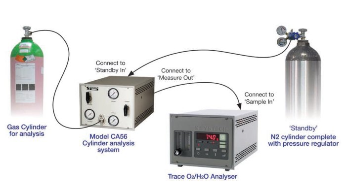 The Gas Cylinder Analysis System is capable of quickly and easily measuring trace gas impurities such as oxygen, moisture or other trace impurities.