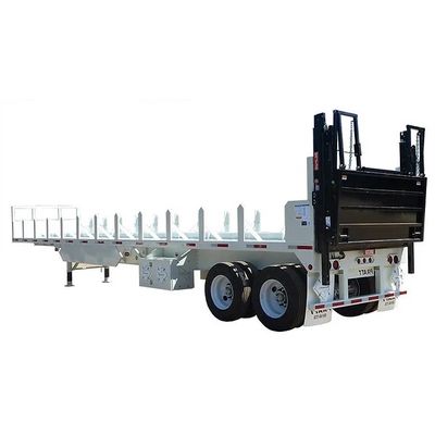 PRATT`s custom built flatbed trailer to handle gas cylinder pallets, equipped with a lift gate, GVWR 80,000 LBS.