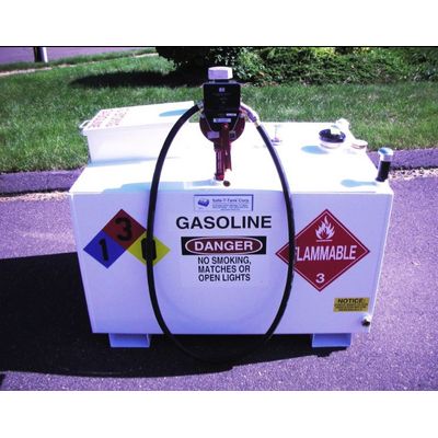 Double wall 50-gallon dispensing tank with fill box, rotary hand pump, venting and level gauge. 27 1/2" x 23 1/4" x 23 3/4", 300# empty.