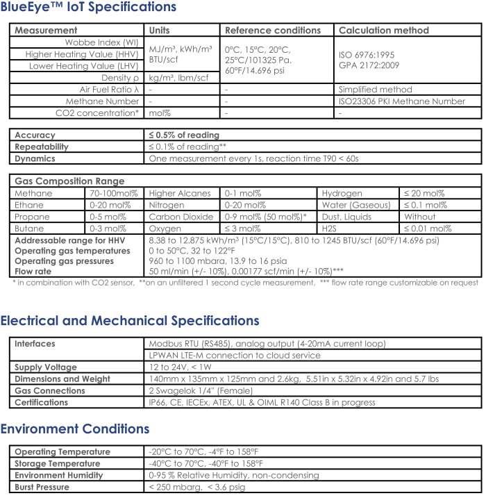 - The ULTRA compact and accurate BlueEye™ OEM gas analyzer works on Bright Sensors‘ patented Dynamic Viscosity measurement principle which correlates to the Wobbe Index, Lower and Higher Heating Value. It is specifically developed to be extremely reliable, costs 1/20th of a low spec Gas Chromatograph without OPEX, and can be powered by and communicate via USB.