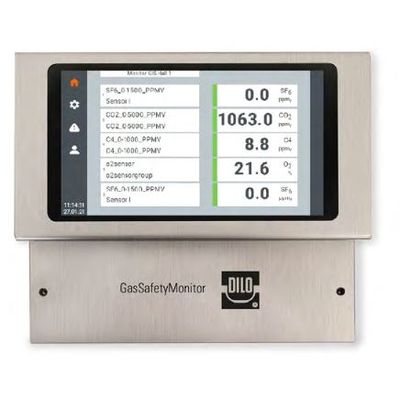 The central management, supply and control unit displays the measured values and messages of the connected Sensors which measure the concentration of different gases in ambient air. The Monitor allows to display and record the measured values as well as to register messages. The potential-free relays serve for controlling further warning systems. Up to 32 Sensors can be controlled and monitored. Thanks to the well-proven DILO operating and setting principle, important data, warning and alarm limit values can be retrieved. The installation and maintenance of the Sensors via the plug-and-play concept makes handling very comfortable. Measured values and messages are stored and can be retrieved on the 7” colour touch screen, if necessary.