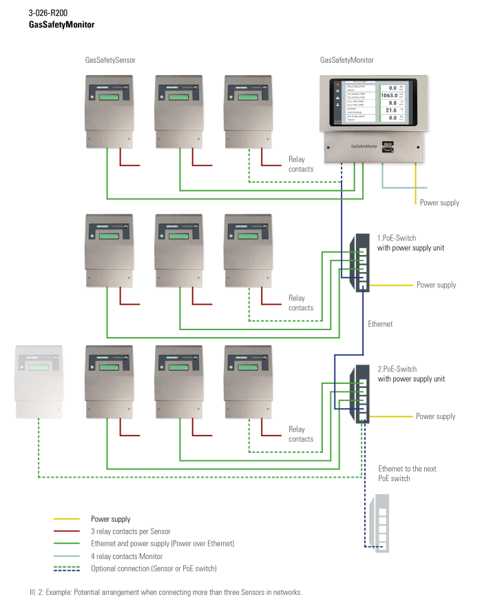 - The additional Sensors can be connected via a PoE-injector switch until the maximum number is reached (see illustration 2)