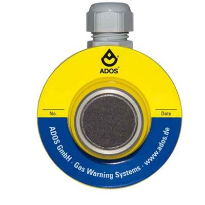 The ADOS TOX 914 LON CO gas measurement sensor uses a method where the air to be measured is diffused into a chemical measuring cell. The H+ ions and electrons released at the electrode are consumed in a cathode reaction. The low of current between anode and cathode generated during this process is directly proportional to the CO concentration in the measured air. The sensor current is amplified and applied via the LON field bus of an evaluation unit e.g. FlexADOS 914 LON, where the measured variable is processed and displayed in ppm CO together with any possibly necessary control and warning functions.