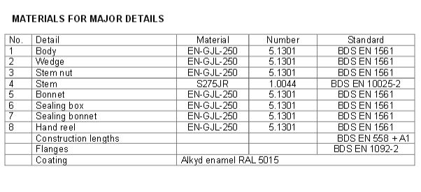 The valve is a pipeline fixture for letting out, stopping and fluid stream regulation, whose closing executive body moves across the fluid direction. The gate valves are mounted on pipelines, through which is transported water, steam or non-aggressive fluids at a pressure not exceeding PN16 or PN10 (for DN40 only) and temperature up to ???? 200° C.