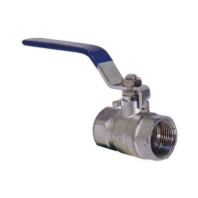 HH gas thread ball valve. PN25 Full bore. Chromed brass construction. PTFE seals. HH threaded ends. Temp. max. 180ºC. Manual control by steel lever.
