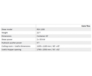 Gator'Box incorporates, in its 20-foot container, the RSX: a two-rotor grinder that can be used both as a rotary shear and a