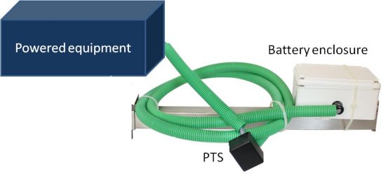 - Battery enclosure must be connected to equipment via PTS. Capacitance/inductance of equipment are restricted.