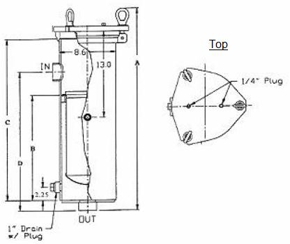 Specifications: The housing has a 3-bolt swing lid closure, vent and gauge ports and two differential pressure ports to measure the differential pressure across the filter bag. Connections are 2 inch NPT with a side inlet and bottom outlet. The basket is made from 304 stainless steel with 9/64″ perforations. It can function as a strainer or a retainer for filter bags. Filter bags are available in 1, 3, 5, 10, 25 and 50 microns. The lid is sealed with a Viton O-ring. All housings are supplied with adjustable tripod legs.