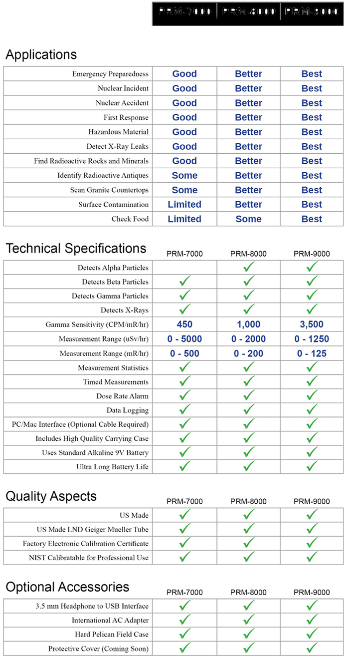 - The PRM-9000’s maximum reading is 125 mR/hr the Inspector is 110 mR/hr.