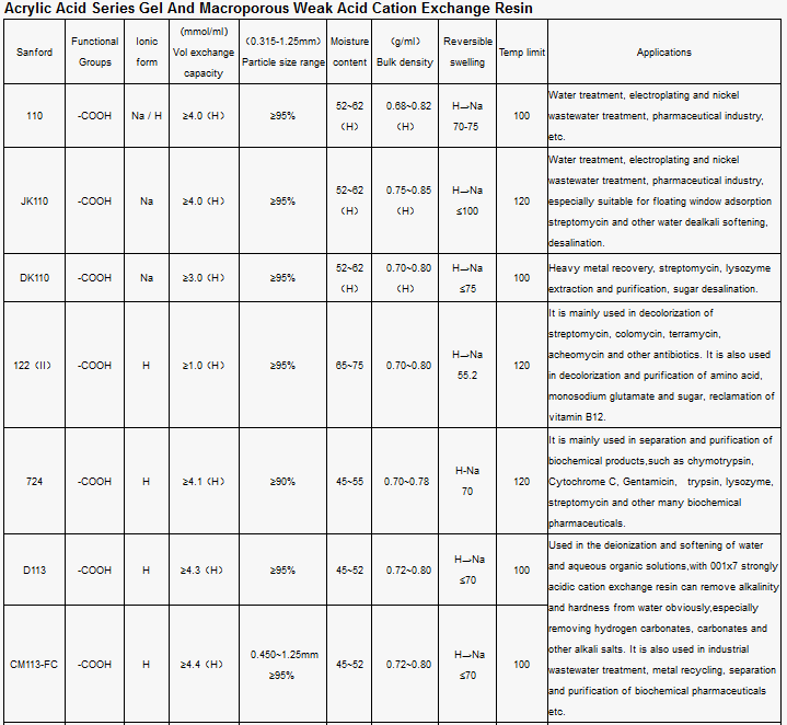 Sanford - Gel and Macroporous Weak Acid Cation Exchange Resin (WAC)