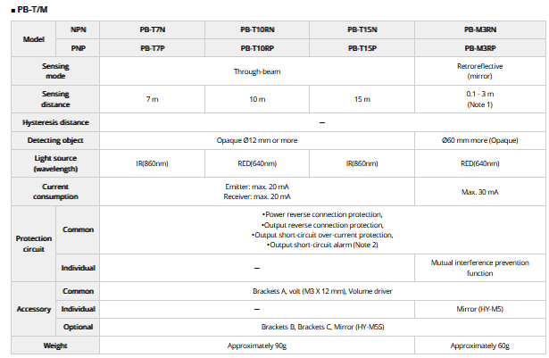 Hanyoung - Model PB Series -General Purpose Photoelectric Sensors