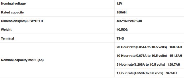 - Rated capacity 150AH (10HR)
