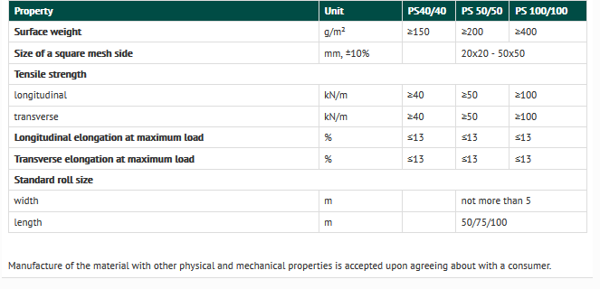 polyester-based geogrids are used to ensure stability, steadiness and required load-carrying capability of road structures, аs well as to prevent ingress of coarse-fractioned materials to underlayers when constructing permanent and temporary roads, including those on weak base.