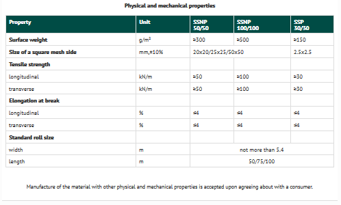 Geogrids are used as reinforcing and dividing interlayer for ensuring steadiness and stability of soil structures when building embankments on weak bases (swamps, waterlogged grounds), when constructing temporary roads, passages along highways and various purpose sites, combined with other geosynthetic materials.