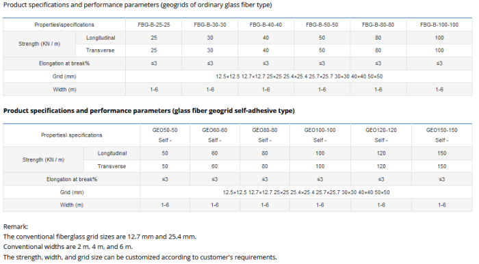 Specification: Fiber glass geogrid,100 kN/m,300 C fusion point