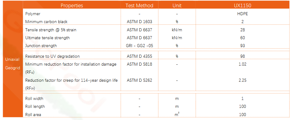 Extruded geognds that are pre-tensioned in one direction are called uniaxial geogrids and are typically used in geotechnical engineering projects concerning reinforced earth and retaining walls.