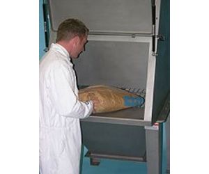 The operator places the sack onto a rest platform, which is enclosed within an extracted cabinet. The bag is cut open and the contents tipped into a surge hopper or directly into process machinery. The laminar flow within the station provided by an extract fan ensures that the dust laden air is carried way from the operator and back into the enclosure.