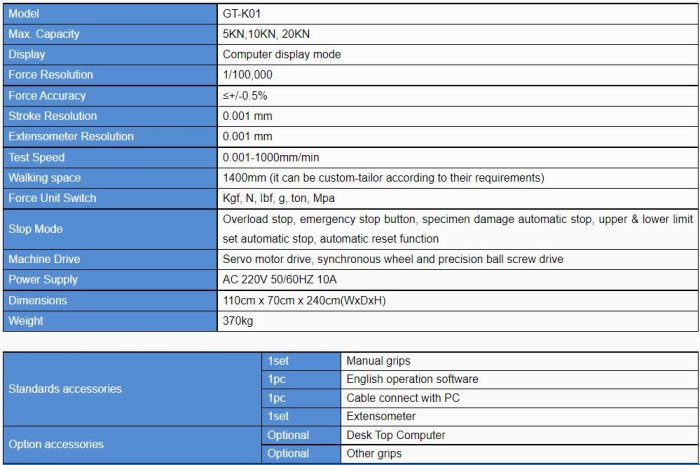 Gester - Model GT-K01 -Universal Testing Machine For Footwear (Dual Column)