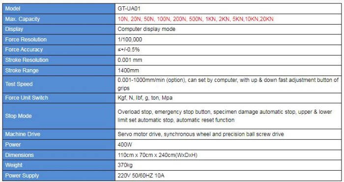 Gester - Model GT-UA01 -Dual Column Computerized UTM Universal Tensile Testing Machine