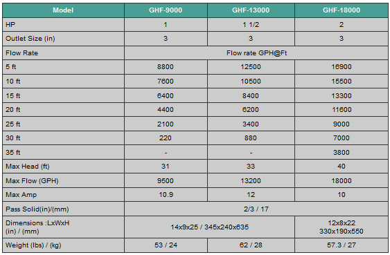 GeyserHi-Flow - Model GHF -Submersible Water Pumps for Ponds