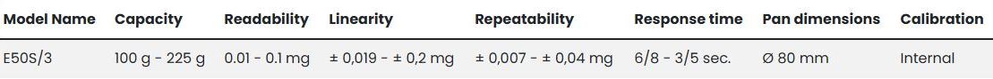 The semi-micro scales of the E50S / 3 series with capacity from 100g up to 225g and division as 0.01mg to 0.1mg are designed to guarantee high performance, protected by a solid screen to reduce environmental components.