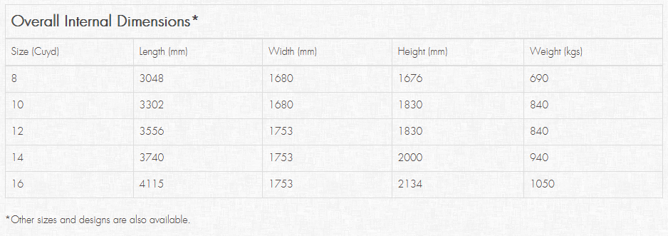 Skips are available with 4mm bases, 3mm sides, ends & roof and reinforced with RSC76mm x 38mm double rails, complete with 2 lengths of PSA in the base as standard, for added strength all have internal corner gussets. All material used is prime grade, laser cut and robotically welded where possible to ensure guaranteed precision and consistency of build. All lifting lugs are fully welded through the RSC with backing plates for extra strength. Skips come as standard double tipping with 1.2mm steel doors, that are reinforced with RHS30mm x 30mm x 2mm. DuraFlex doors, Single Tipping and Easy Discharge containers are also available.