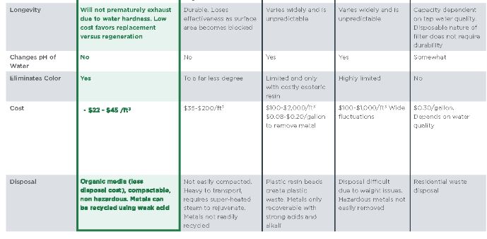 - Replacement for ion exchange and activate carbon media at a fraction of the cost