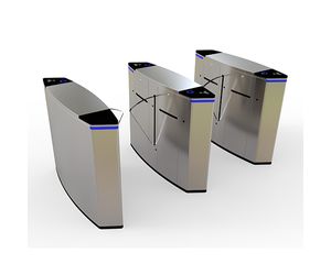 Glass wing optical turnstile is a simple and cost-effective waist high optical turnstile which is made up of two cabinets connected by invisible infrared beams. These cabinets use the infrared beams to detect whether pedestrians have passed through the optical turnstile lane. The illegal intrusions or tailgating attempts will trigger a visual or audible alert . If the turnstile is supplied with a physical barrier, the barrier will refuse to open along with the alerts to effectively deny access. Flap barrier gate turnstile is able to be integrated with various access control systems and can be controlled remotely. Flap gate optical turnstile is mostly used at commericial and industrial places such as exhibitions, supermarkets, public transports.
