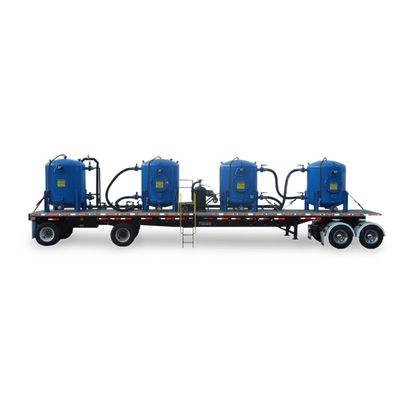 Global Environmental’s MWT-3K4 Wastewater Treatment Trailer is designed for versatility and mobility, ensuring a user-friendly process from setup to operation to teardown. It features two three-stage bag filter housings, four 3,000-pound carbon vessels, HDPE piping, pressure/suction hose plumbing, a totalizing flow meter, and pressure gauges with sample ports throughout. The system offers flexible configuration options, allowing operators to run all four vessels in series or as two sets of lead/ lag vessels, all adjustable with just a few valve turns. Depending on filtration needs, carbon can be substituted with impregnated organo-clay or sand. Our team of EGLE-certified industrial water treatment operators is available 24/7 to provide support for system operation.