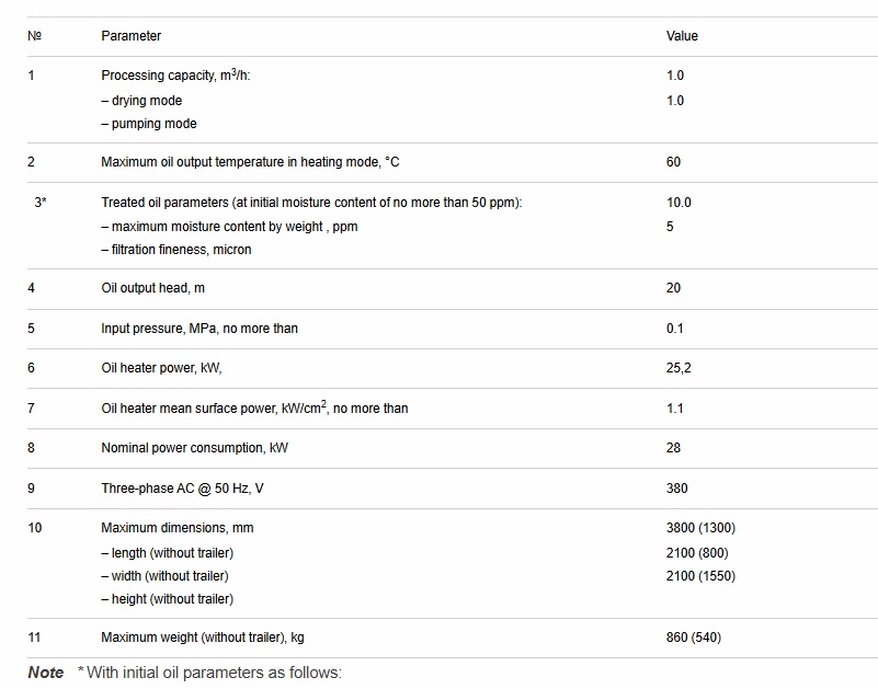 - oil heating temperature up to +60±5 o? within 30 minutes of heating;
