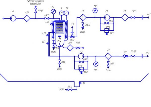 Pumps ?1 and ?2 (Fig.1) facilitate input and output of transformer oil. The pumps are controlled from the control panel. P1 and P2 pumps are equipped with by-pass line and valves MV7 and MV8.