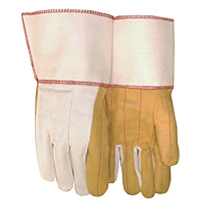 18 oz. Golden Quilted Palm, White Back and Cuff Starched Gauntlet Gloves.