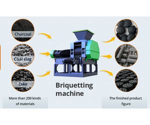 BBQ Roller Press Briquette Machine is a kind of solid fuel that can be pressed by a charcoal briquette machineThe BBQ Roller Press Briquette Machine is a device that presses powdered materials into balls which are easy to transport, burn and smelt. Materials frequently handled by the company include coal, peat, charcoal, concentrate tailings, etc.
