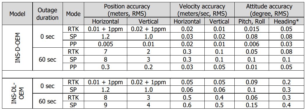 - Heading accuracy = 0.03 deg (PPK) / 0.05 deg (RTK)