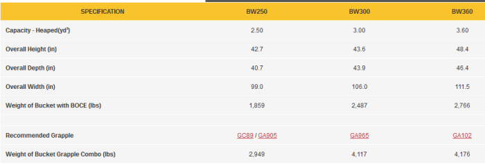 GrabTec - Model BW -Wheel Loader Buckets & Grapple Combos
