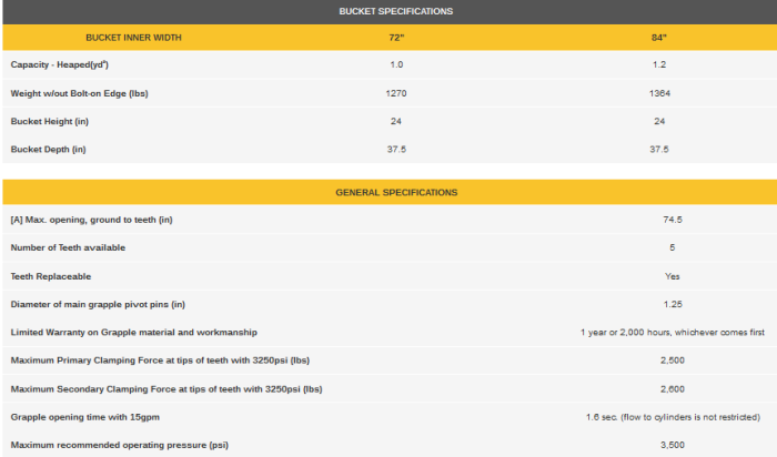 Built for machines with the universal skid loader quick attach. This bucket`s larger capacity is designed to allow todays larger Skid Steers, Compact Utility Tractors, Compact Wheel Loaders, and Telehandlers take advantage of their heavier lift capabilities.